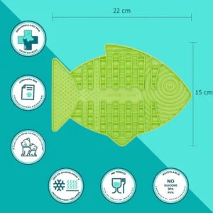 PROMUEVE LA ACCION DE LAMER: las superficies LickiMat promueven un lamido placentero tanto para perros como para gatos. La acción de lamer genera saliva que ayuda a proteger los dientes y las encías de tu mascota y puede ayudar a la digestión ya que la saliva contiene enzimas como la amilasa. La superficie de goma natural también raspa las partículas de comida y las bacterias que causan el mal olor de la lengua de tu mascota, promoviendo un aliento más fresco.