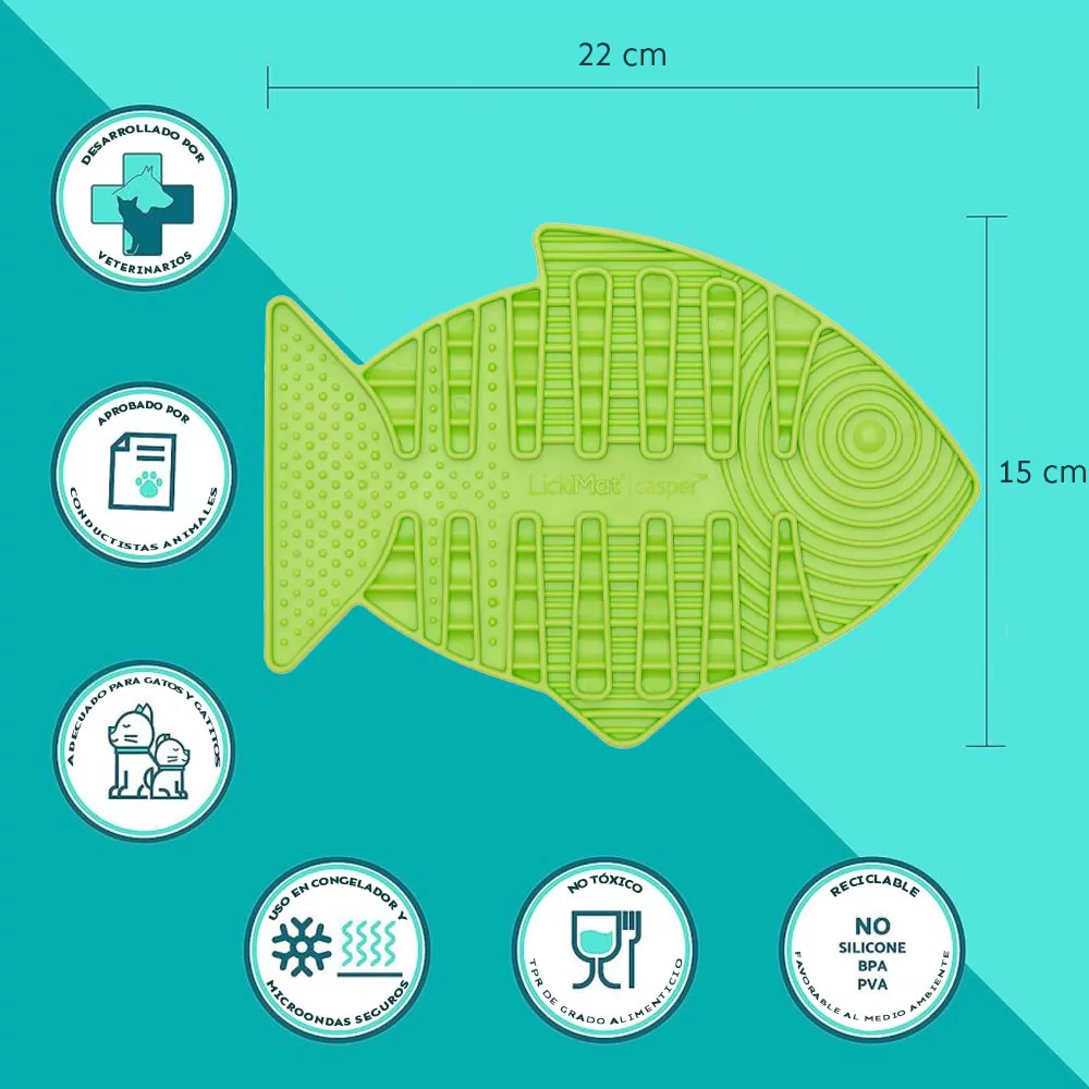 RECOMENDADO PARA PERROS Y GATOS: los patrones texturizados de LickiMat están diseñados para complacer las lenguas de perros y gatos y para funcionar con todo tipo de golosinas y alimentos, desde yogurt, mantequilla de maní y todo tipo de golosinas untables hasta crudos, húmedos, alimentos secos y líquidos. La acción de lamer mejora el sentido del gusto, permitiendo que tu mascota disfrute de una pequeña cantidad de comida. Los LickiMat también son perfectos para agregar suplementos y medicamentos a las golosinas.