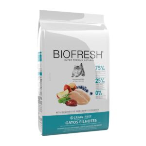 Biofresh Pollo Gatito es la dieta Súper Premium Natural, Grain Free y libre de transgénicos diseñada para el desarrollo carnívoro y rápido de tu gatito. Con un impresionante 44% de proteína bruta y un 75% de ingredientes de origen animal, esta fórmula satisface su instinto natural mientras promueve un crecimiento saludable y equilibrado. Su alto contenido en EPA+DHA y antioxidantes asegura un sistema inmune fuerte, una visión aguda y una base de salud sólida para su vida adulta.