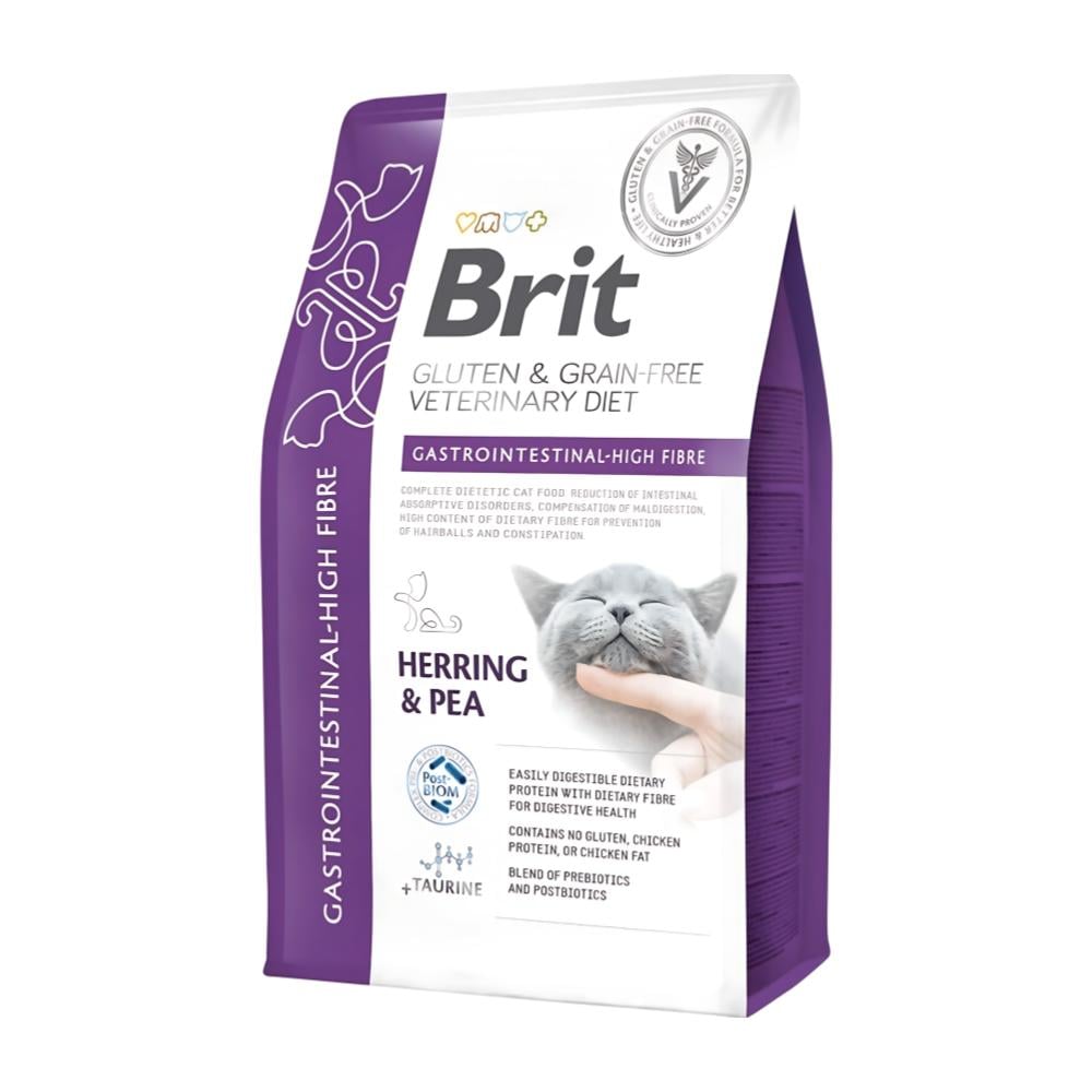 Brit Veterinary Diet Gastrointestinal High Fibre es una solución nutricional formulada para favorecer el confort digestivo en gatos, logrando un tránsito intestinal fluido y la reducción de la acumulación de vello gracias a su alto contenido de fibra alimentaria y proteínas hidrolizadas.