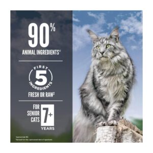Orijen Guardian Senior 7+ 4.5kg es un alimento ultra premium biológicamente apropiado indicado para tratar el desgaste articular y la pérdida de masa muscular en gatos sénior, logrando un envejecimiento saludable y vitalidad cognitiva gracias a su fórmula con 85% de ingredientes animales de presa entera y niveles óptimos de Omega-3 y DHA.