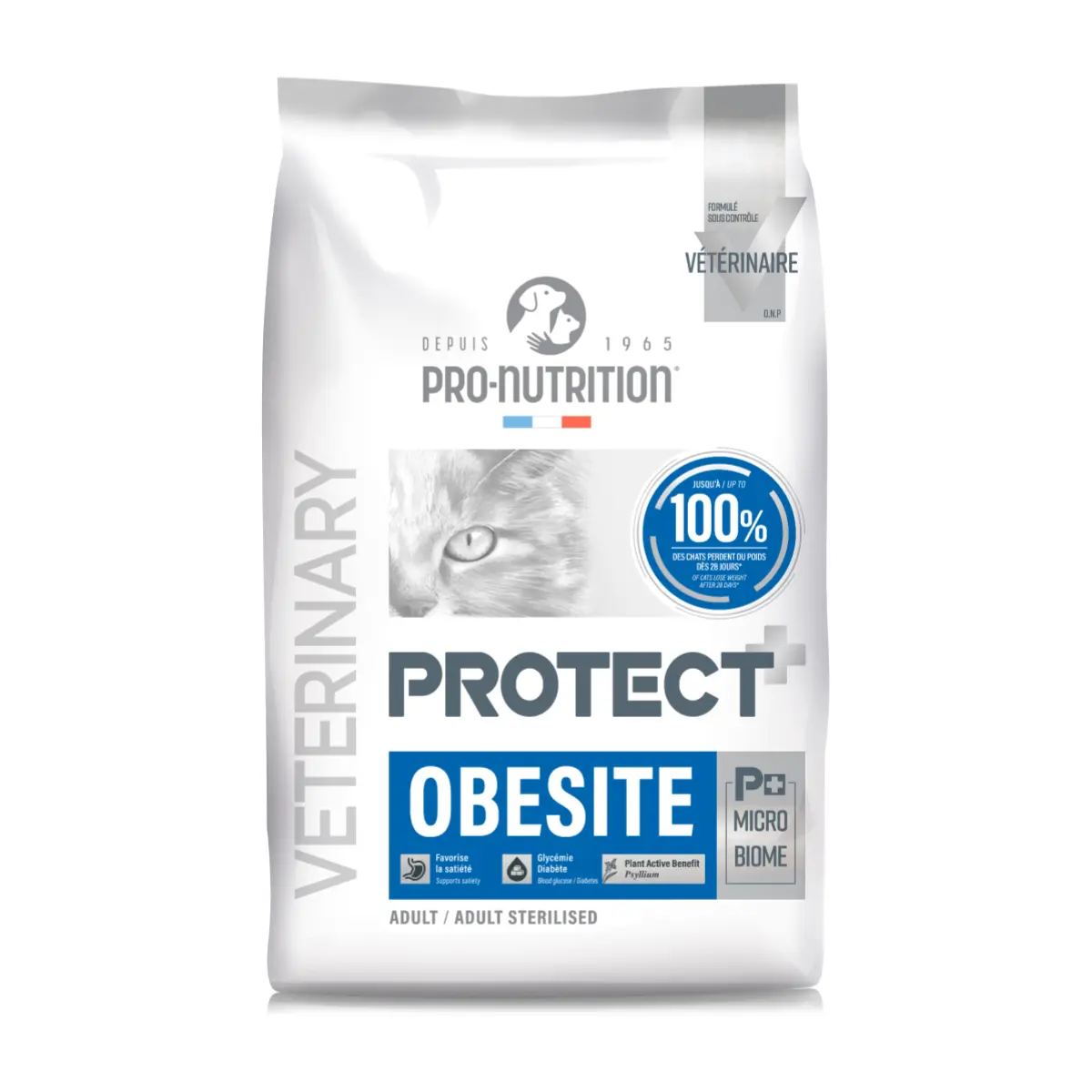 Protect Obesite Gatos 2kg es un alimento dietético completo indicado para tratar el sobrepeso y la obesidad en felinos, logrando una pérdida de peso efectiva y una mayor saciedad gracias a su alta densidad de fibras naturales y niveles controlados de energía.