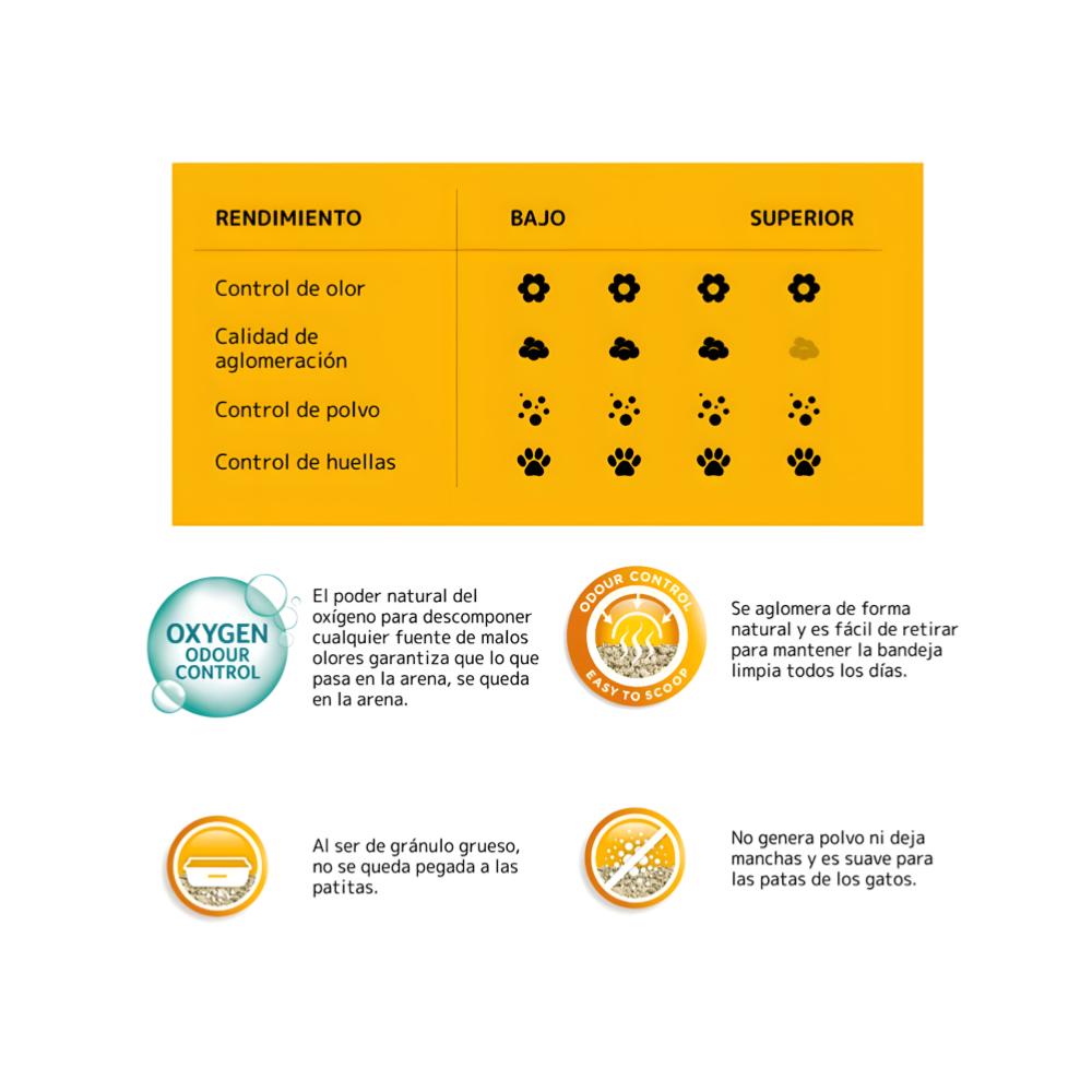 Sanicat Clumping es una solución higiénica y respetuosa con el medio ambiente. Su fórmula con bentonita y oxígeno activo controla eficazmente los olores, lo que se traduce en un hogar más fresco. La rápida aglomeración facilita la limpieza diaria, y solo necesitas retirar los residuos, lo que hace que la arena dure más y sea más económica. Además, su textura de gránulo grueso es cómoda para las patas de tu gato y ayuda a mantener el entorno más limpio.