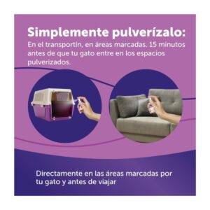 El spray libera de forma concentrada la feromona facial (F3), el mensaje de «seguridad» que los gatos usan para marcar su entorno como seguro. Esto ayuda a reducir rápidamente el estrés asociado con la novedad o el confinamiento, como en un transportín o un consultorio veterinario.