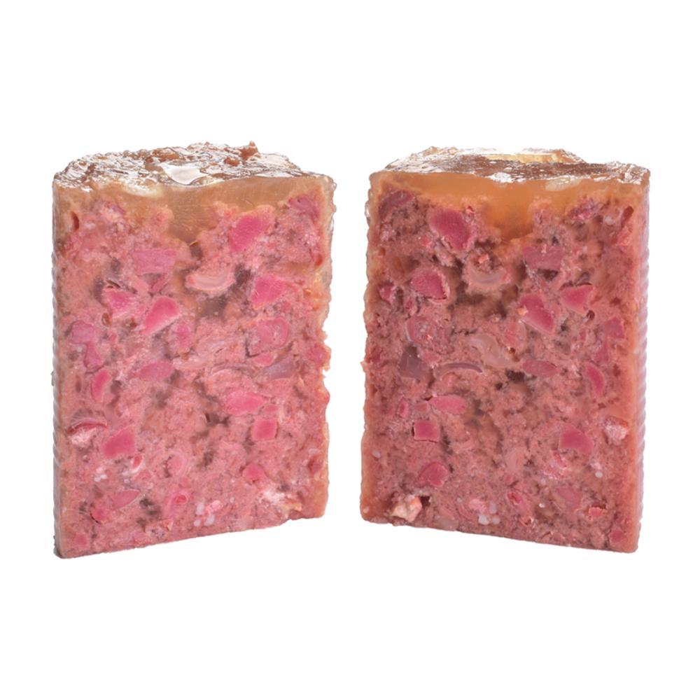 Composición: 44 % pollo (carne y vísceras), 26 % pavo (carne y vísceras), 3 % almidón de guisante, 1 % fibra de guisante, 0,5 % aceite de salmón.