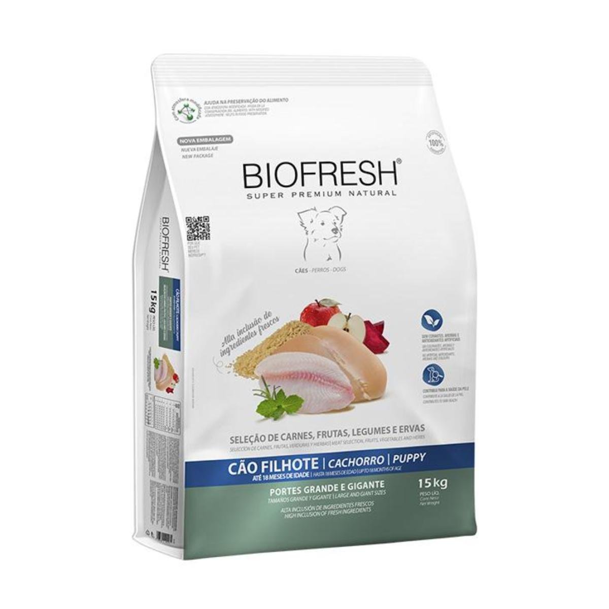 Biofresh Mix de Carnes 15kg Cachorro es un alimento súper premium natural indicado para tratar el crecimiento acelerado descontrolado en cachorros de razas grandes y gigantes, logrando un desarrollo óseo armónico y articulaciones blindadas gracias a sus niveles moderados de energía y su alto aporte de condroprotectores.