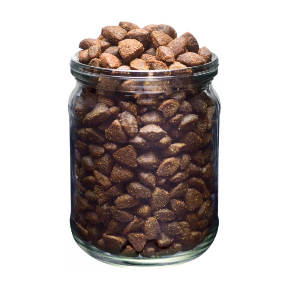pavo fresco (40 %), guisantes (10%), pavo secado (10%), arroz (8%), grasa de pollo (conservada con tocoferoles mezclados), manzanas, avena, alforfón, psilio, remolacha azucarera entera, aceite de salmón, levadura de cerveza, semillas de lino, hígado de pollo, colágeno, algas, aronia (0,2%), perejil, romero, tomillo, caléndula, diente de león (0,05%), probióticos (Enterococcus faecium 1×109 UFC), glucosamina 1 700 mg/kg, sulfato de condroitina 1 300 mg/kg, fructo-oligosacáridos 220 mg/kg, betaglucanos 200 mg/kg, manano-oligosacáridos 180 mg/kg, yuca 150 mg/kg, mejillón de labio verde 100 mg/kg.