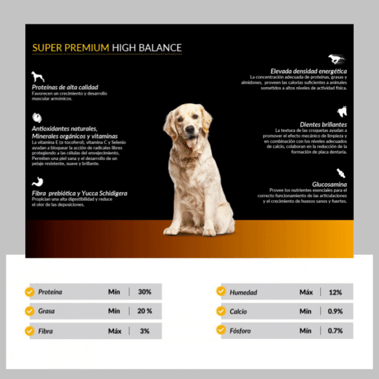 Elevada densidad energética: La concentración adecuada de proteínas, grasas y almidones, proveen las calorías suficientes a animales sometidos a altos niveles de actividad física.