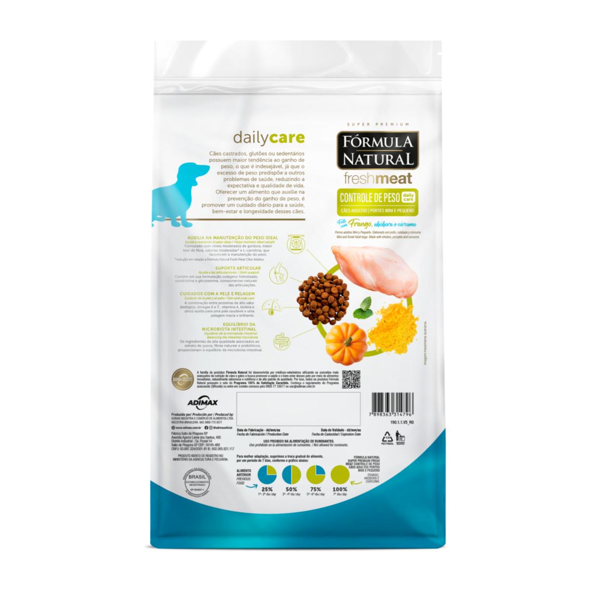 Fórmula Natural Control Peso para Adultos de Raza Pequeña es un alimento seco de la Línea Súper Premium formulado para ayudar a mantener un peso ideal en perros adultos de tamaño mini y pequeño propensos al sobrepeso (castrados, glotones o sedentarios). Esta fórmula se distingue por su equilibrio: alta proteína (30%) para mantener la masa muscular y baja grasa (12%) con un alto nivel de fibra (4.5%) para promover la saciedad y la regularidad intestinal. Está elaborado con Carne Fresca de Pollo (mín. 16%) e incluye L-Carnitina para el metabolismo de las grasas.