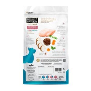 Fórmula Natural Fresh Meat Pollo para Adultos de Raza Pequeña es un alimento seco de la Línea Súper Premium formulado para satisfacer las necesidades de nutrición y bienestar de perros adultos de tamaño mini y pequeño. Su fórmula de alta calidad se basa en Carne Fresca de Pollo (mín. 16%), garantizando una excelente digestibilidad. Contiene ingredientes funcionales como prebióticos (MOS/FOS) y protectores articulares (Glucosamina/Condroitina), esenciales para el bienestar diario. Es una opción limpia, sin colorantes, conservantes ni transgénicos, utilizando únicamente antioxidantes naturales.