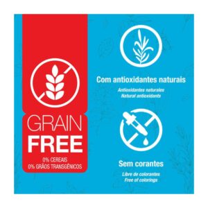 Carnes seleccionadas (mín. 16% – carne de pollo, carne separada mecánicamente e hígado de pollo), harina de subproductos avícolas, harina y almidón de yuca (mín. 15%), harina de guisantes, almidón de patata, aceite de subproductos avícolas, aceite de salmón, potenciador de la palatabilidad a partir de subproductos de cerdo y pollo, fibra de caña de azúcar, frutas y verduras deshidratadas (mango, manzana, zanahoria, tomate), pulpa de remolacha, linaza, cloruro de sodio, Schizochytrium sp. harina de algas, zeolita, prebióticos (pared celular de levadura, fructooligosacáridos e inulina), extracto de yuca (0,04%), colágeno hidrolizado (0,05%), sulfato de condroitina (0,01%), sulfato de glucosamina (0,03%), vitaminas (A, D3, E, K3, C, B1, B2, B6, B12, biotina, pantotenato de calcio, ácido fólico, niacina, cloruro de colina), minerales (sulfato de hierro, sulfato de cobre, yodato de calcio, cloruro de potasio, proteinato de zinc, óxido de zinc, óxido de manganeso, proteinato de selenio, selenito de sodio), ácido propiónico, lisina, metionina, taurina, extractos de té verde y romero (mín. 0,01%), concentrado de tocoferol (antioxidante natural) (0,01%).