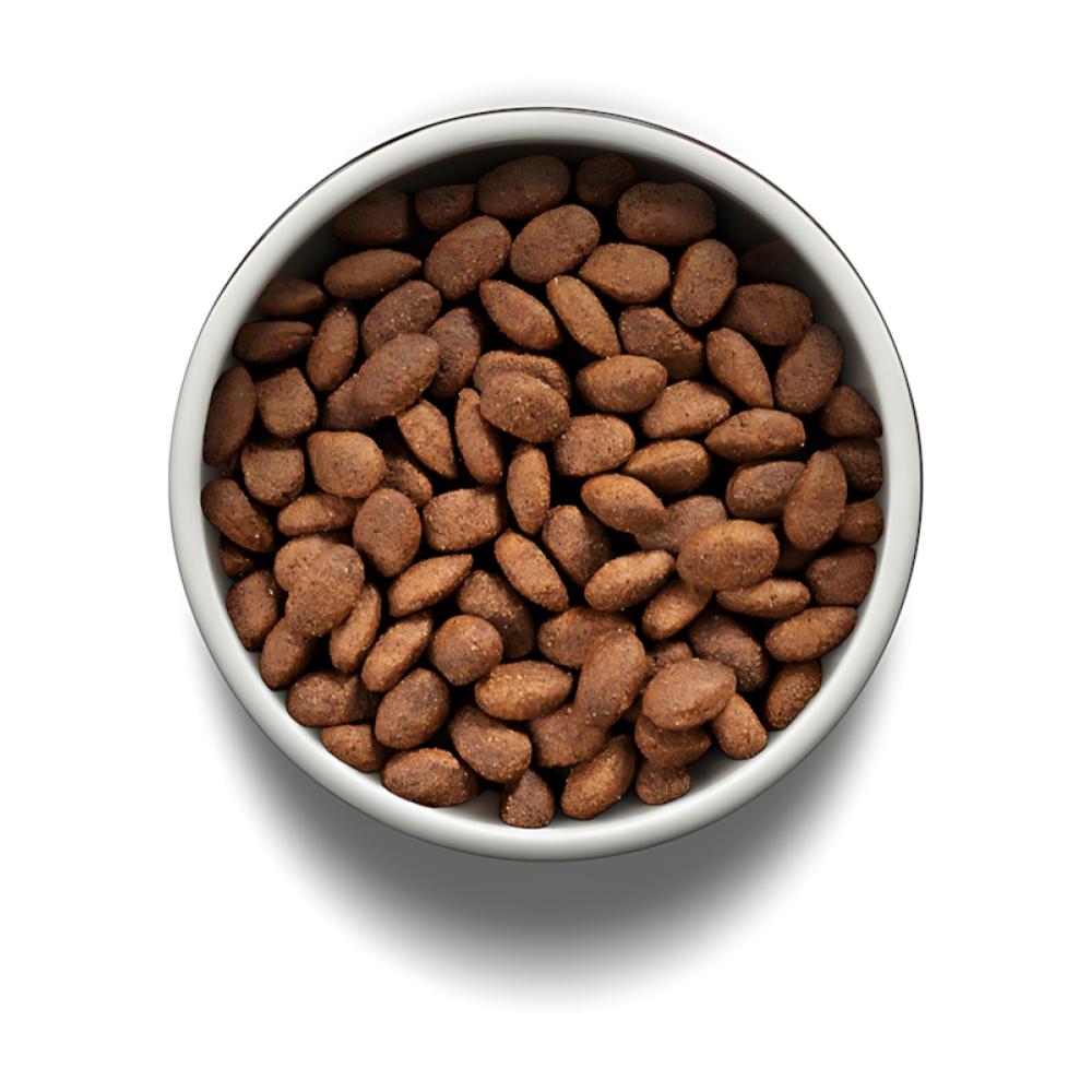 Selección de ingredientes de origen animal, mín. 60% (de los cuales mín. 16% son carnes seleccionadas: carne de cordero, carne de pollo separada mecánicamente e hígado de pollo; harina de subproductos avícolas, harina de chicharrón de cerdo (proteína de cerdo aislada), huevo en polvo, gelatina (colágeno hidrolizado), aceite de subproductos avícolas, grasa de cerdo, aceite de pescado refinado, hidrolizado de hígado de ave y de cerdo). Selección de cereales integrales, mín. 35% (arroz integral, avena, cebada y sorgo). Selección de frutas, verduras, vitaminas, minerales e ingredientes funcionales, máx. 5% (de los cuales máx. 3% son Frutas y Verduras Seleccionadas): Guisantes, Brócoli en Polvo Deshidratado, Espinacas Deshidratadas, Zanahorias Deshidratadas, Extracto de Arándanos, Moras Deshidratadas, Manzanas Deshidratadas, Mangos Deshidratados, Pulpa de Remolacha, Harina de Algas Schizochytrium sp., Semillas de Psyllium, Levadura de Cerveza Deshidratada, Aceite de Linaza; Cloruro de Sodio «Sal Común», Cloruro de Potasio, Carbonato de Calcio, Sulfato de Condroitina, Sulfato de Glucosamina, Pared Celular de Levadura Fuente de Beta-Glucanos; Aditivos Prebióticos, mín. 0.25%: Inulina y Pared Celular de Levadura Fuente de Manano-oligosacáridos; Concentrado de Tocoferol mín. 0.08%, L-Lisina, Taurina, DL-Metionina, Propionato de Calcio, Sorbato de Potasio, Aditivo Adsorbente; Vitaminas: A, D3, E, K3, C, B1, B2, B6, B12, ácido pantoténico, ácido fólico, niacina, biotina, cloruro de colina; Minerales: sulfato de zinc, sulfato de hierro, sulfato de manganeso, yodato de calcio, selenito de sodio; Minerales quelados: proteinato de manganeso, levadura enriquecida con selenio, proteinato de zinc, proteinato de cobre).