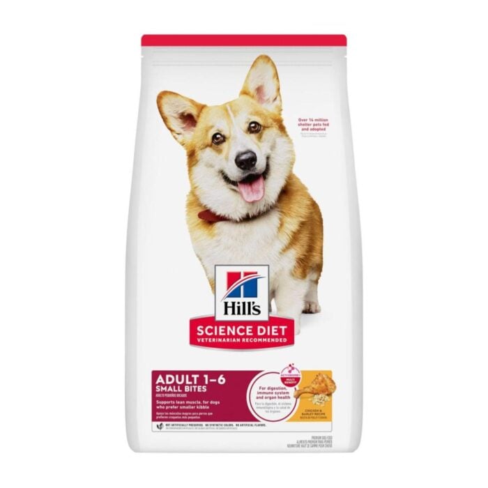 Hill’s Science Diet Adult Small Bites Chicken es un alimento seco premium formulado para favorecer el mantenimiento de la energía en perros adultos, logrando una condición corporal ideal y un pelaje brillante gracias a su proteína de alta calidad y ácidos grasos esenciales.