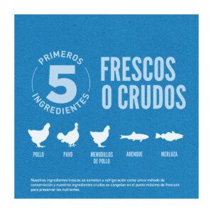 Ingredientes frescos y crudos: Los primeros 5 ingredientes son siempre frescos o crudos, garantizando la máxima nutrición y calidad.