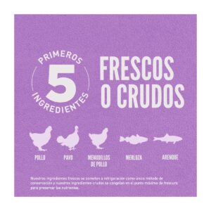 Ingredientes frescos y crudos: Los primeros 5 ingredientes son siempre frescos o crudos, garantizando la máxima nutrición y calidad.