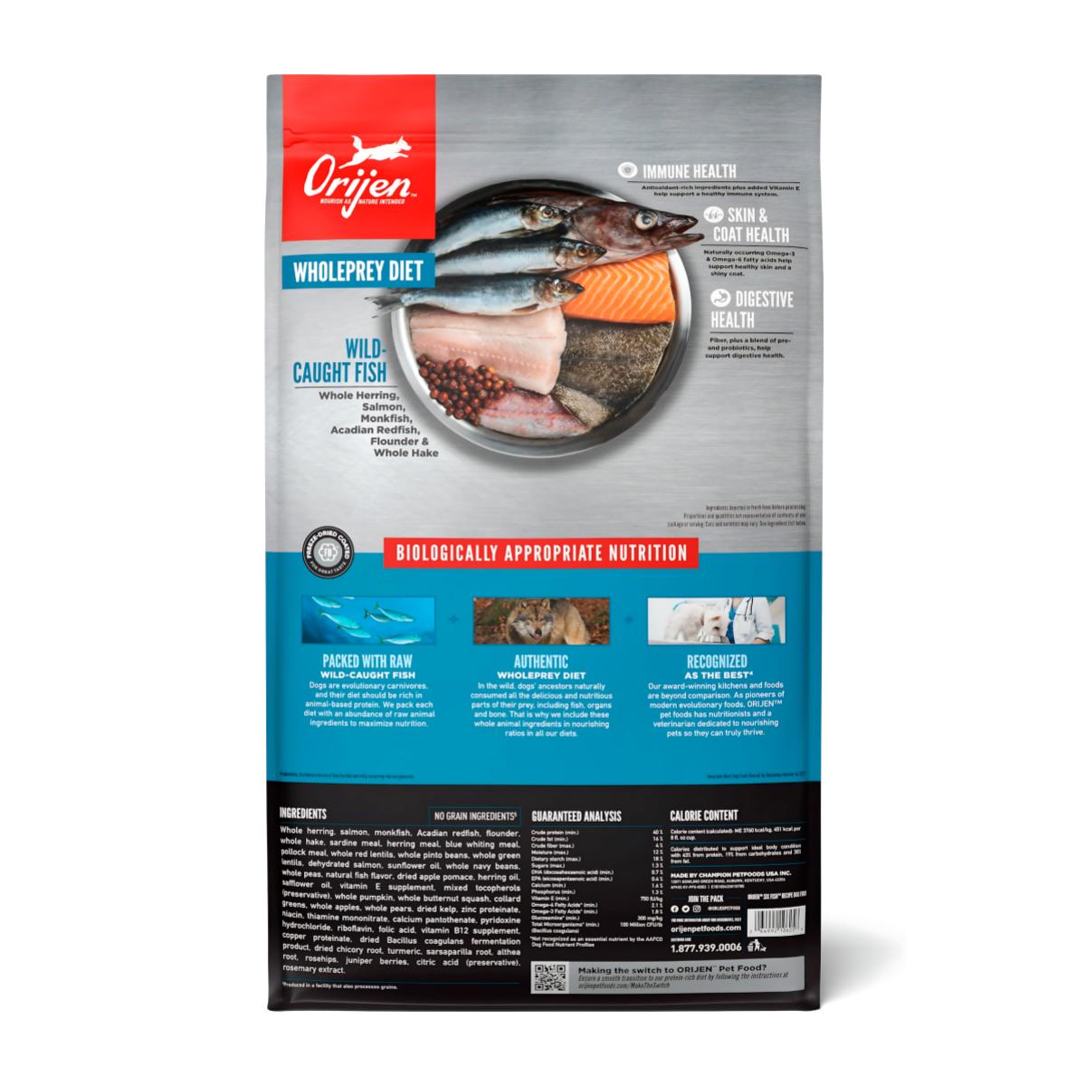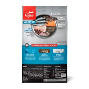 Ayuda a tu perro a prosperar con la energía de las recetas ricas en proteínas, que proporcionan la máxima nutrición. Los perros son ancestralmente carnívoros, así que necesitan una dieta Biologically Appropriate™ (Biológicamente Apropiada) rica y variada en ingredientes enteros de origen animal. La dieta ORIJEN™ Six Fish™ está elaborada con una variedad de deliciosos pescados, que incluye sardina, caballa, merluza, platija, pez roca y lenguado. Rico en ingredientes de origen animal de presa entera como órganos y espinas, ORIJEN™ Six Fish™ está elaborado con las partes suculentas y nutritivas de la presa, para proporcionar la nutrición que los perros necesitan. Con un 85% de ingredientes de pescado de calidad y un recubrimiento de hígado liofilizado, esta dieta no tiene comparación.