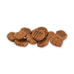 Brit Meat Jerky Snack Rabbit Meaty Coins es un delicioso alimento complementario diseñado para perros adultos. Estas «monedas» tienen un tamaño ligeramente mayor (3,5-4 cm) que las de cachorro, ideal para las mandíbulas de un perro adulto. Es una recompensa perfecta para usar durante el entrenamiento de obediencia o simplemente como un sabroso premio. Contiene un 85% de pollo y conejo real, ofreciendo una fuente de proteína de alta calidad para el mantenimiento muscular, y está enriquecido con arándanos.
