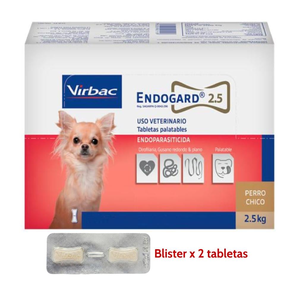 Endogard 2.5 es un tratamiento antiparasitario interno diseñado específicamente para perros pequeños y cachorros, utilizando una combinación exclusiva de cuatro principios activos. Además, su formato es altamente palatable, lo que permite que sea administrado de manera sencilla como si fuera un premio. Por lo tanto, ofrece una cobertura completa contra nemátodos, cestodos, trematodos y protozoarios. En consecuencia, garantiza una desparasitación profunda y efectiva para mantener la salud integral de su mascota pequeña.