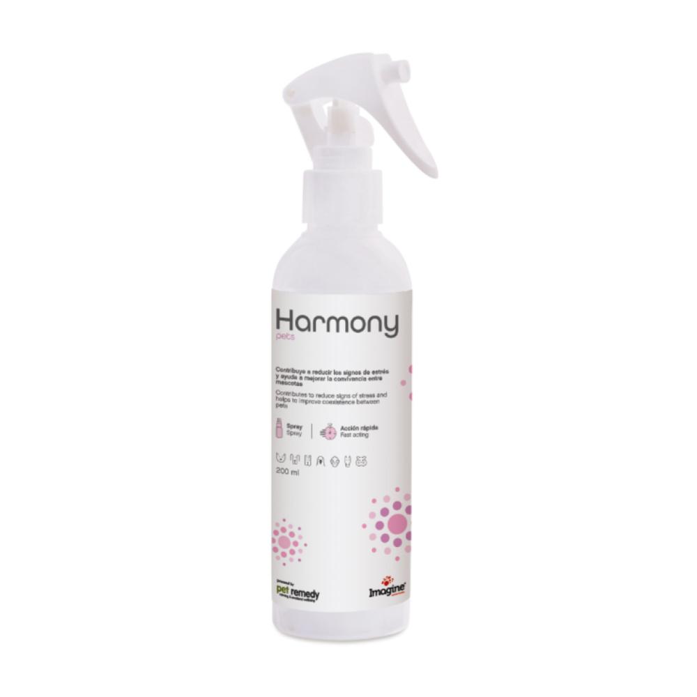 Harmony Pets es un modulador de comportamiento en formato de spray de 200 ml, formulado con una mezcla patentada de aceites esenciales ricos en terpenos. Ayuda a reducir los signos de estrés y fomenta una convivencia relajada entre mascotas. Su acción puede durar entre 2 y 6 horas, dependiendo del animal.
