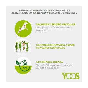 El Collar YOOS Small de CEVA ofrece una solución natural, práctica y no invasiva para mejorar la calidad de vida de tu perro pequeño, brindando alivio eficaz y continuo durante 30 días gracias a sus aceites esenciales de gaulteria y romero. Su diseño resistente al agua y su liberación gradual de activos actúan directamente en el dolor y la inflamación articular sin la necesidad de ingesta, siendo un aliado fundamental para promover una vida más activa y feliz.