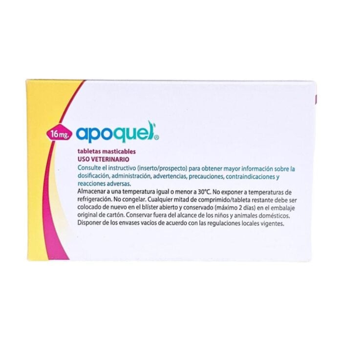 Apoquel® debe ser administrado cada 12 horas (dos veces al día) por 14 días y a partir del día 15 una vez al día para mantenimiento.