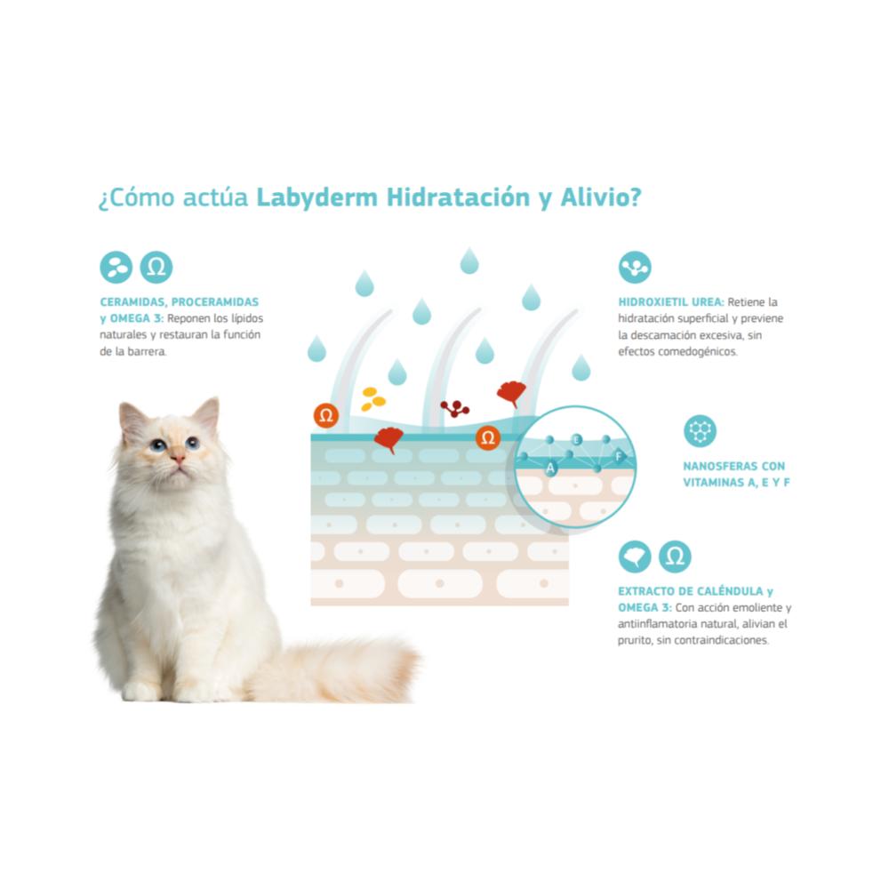 LABYDERM® Hidratación y Alivio es un spray diseñado para restaurar la barrera cutánea. Su fórmula hidrata la superficie de la piel, alivia rápidamente la irritación y el prurito, y restituye la película hidrolipídica de forma rápida. No presenta contraindicaciones.