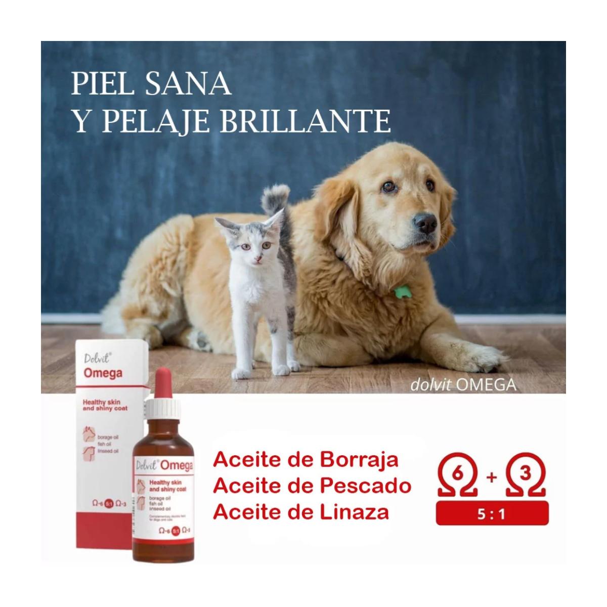 Dolvit Omega Gotas es un suplemento nutricional formulado para favorecer el confort dérmico y el bienestar del pelaje en perros y gatos, logrando una barrera cutánea resistente y un brillo natural gracias a su equilibrio perfecto de ácidos grasos esenciales y aceites botánicos.