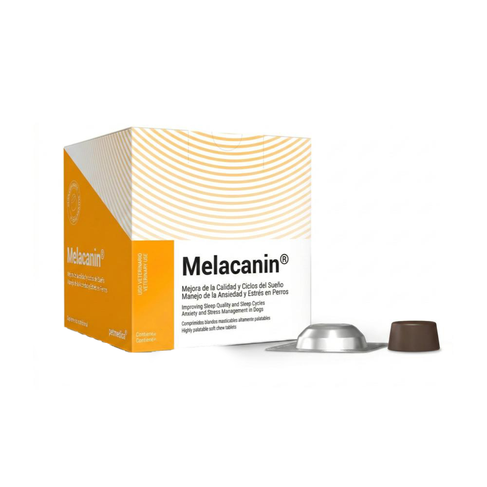 Melacanin es un suplemento calmante formulado para favorecer el equilibrio emocional y el descanso reparador en perros, logrando una profunda relajación y alivio de la ansiedad gracias a su aporte natural de melatonina que regula el ritmo circadiano.