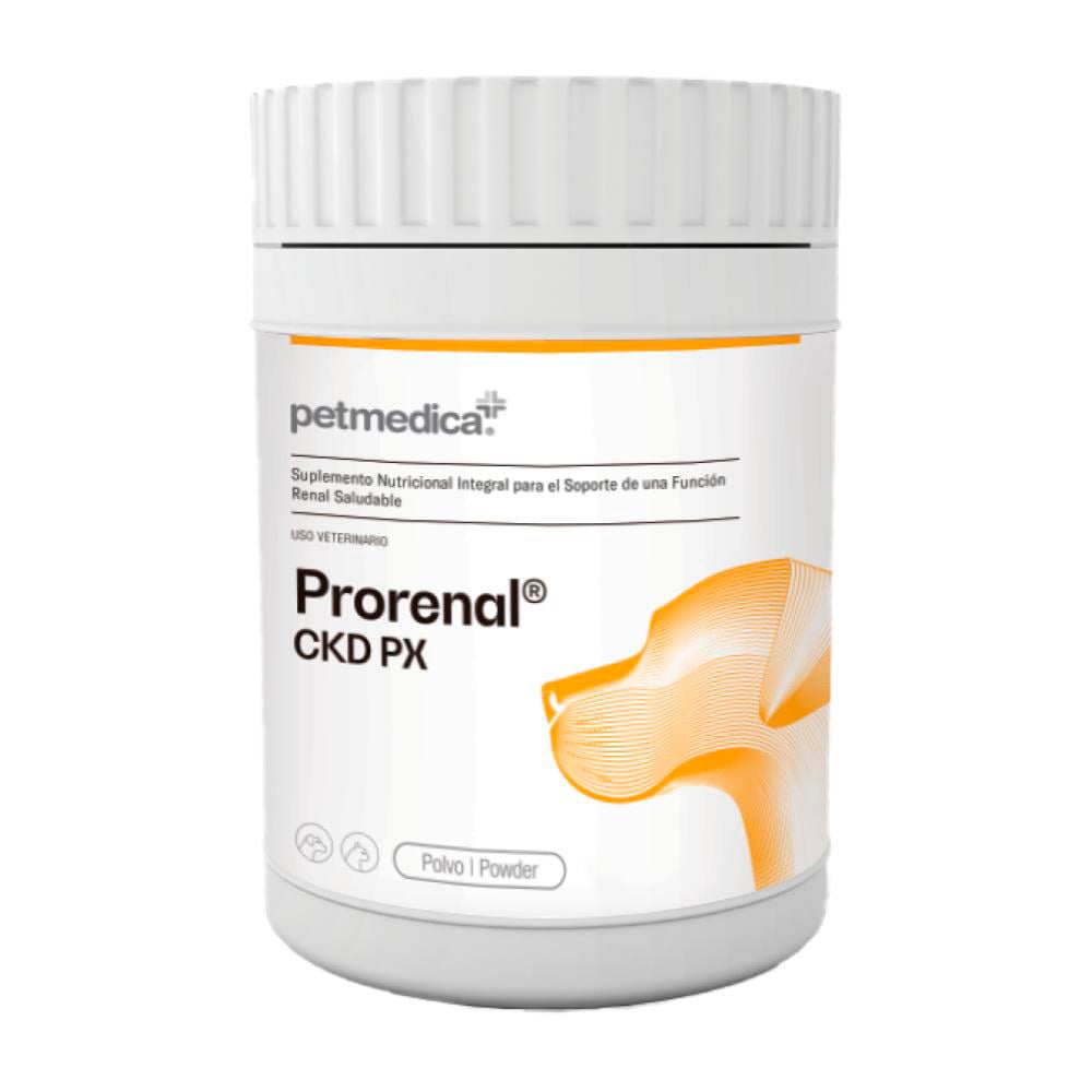 Prorenal® CKD Px es un suplemento nutricional integral, en forma de polvo, para perros y gatos con enfermedad renal crónica en fase inicial o avanzada.
